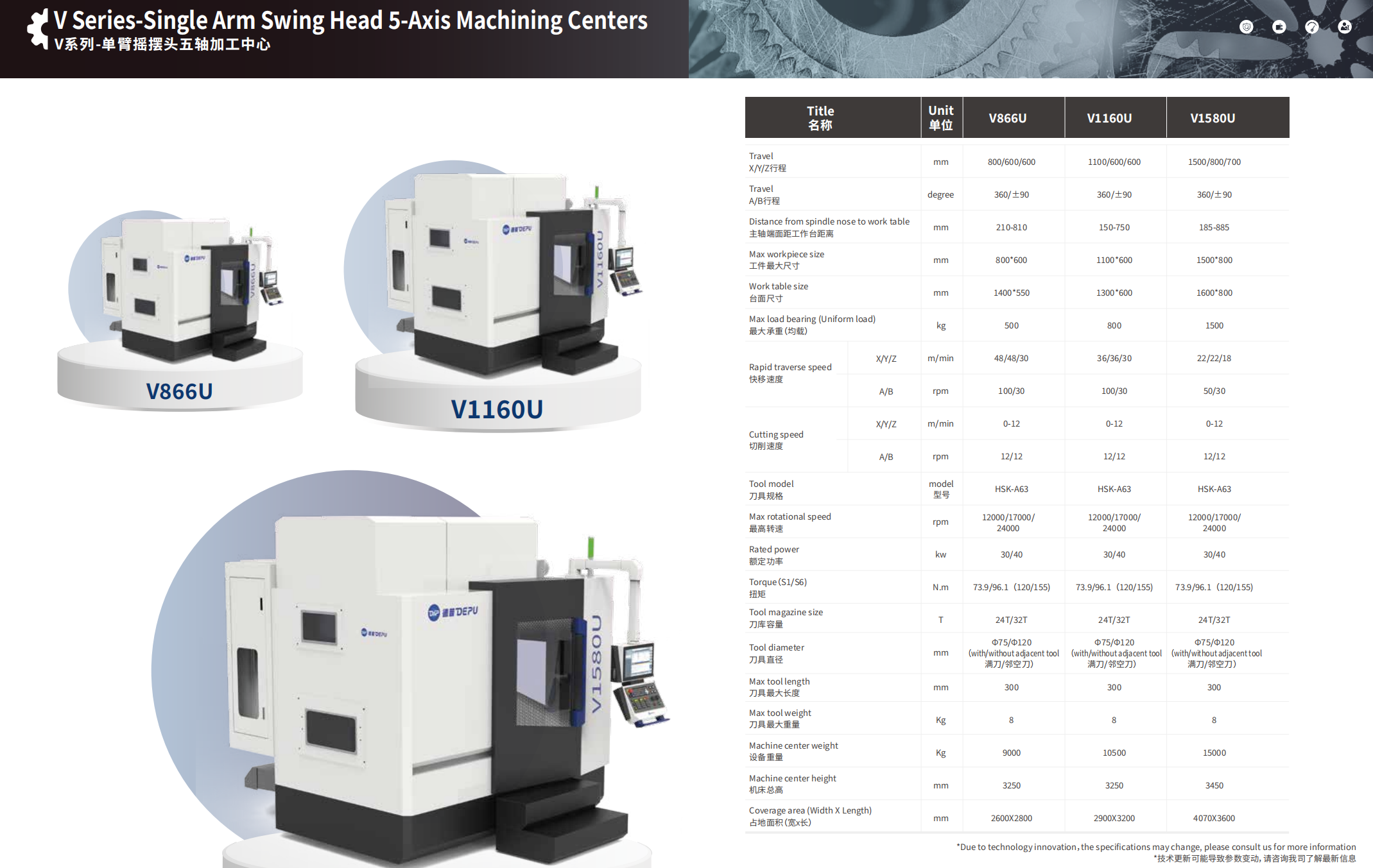 V Series-Single Arm Swing Head 5-Axis Machining Centers